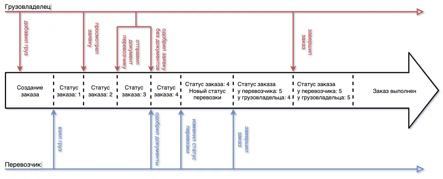 Завершение Заказа - статус Заказа меняется на «завершён». Грузовладелец и перевозчик завершают Заказ независимо друг от друга, то есть один и тот же Заказ может быть завершённым для перевозчика, но ещё не завершённым для грузовладельца.