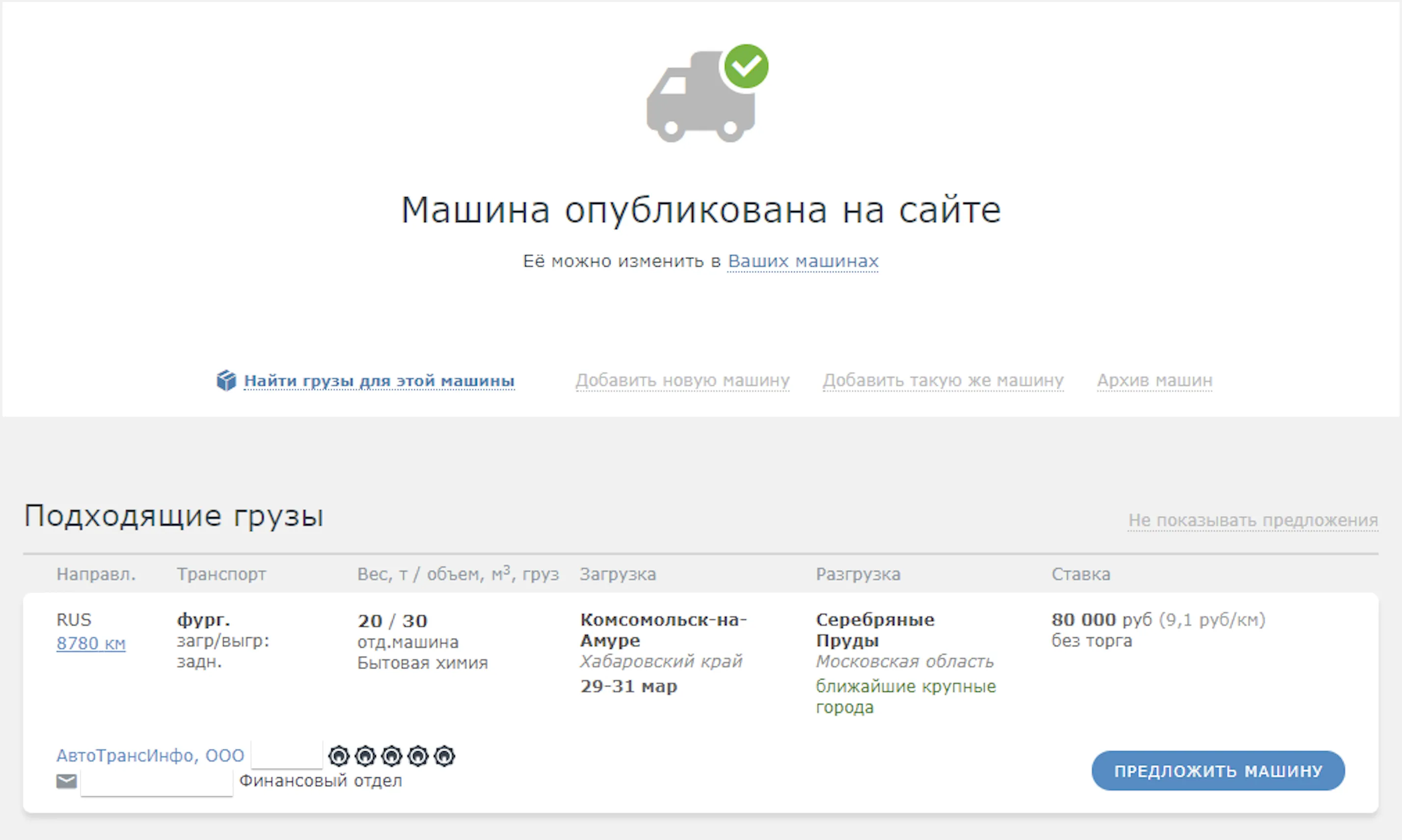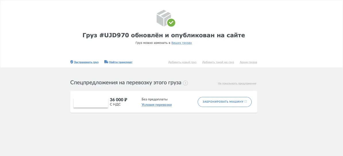 Специальные предложения грузов для перевозчиков
